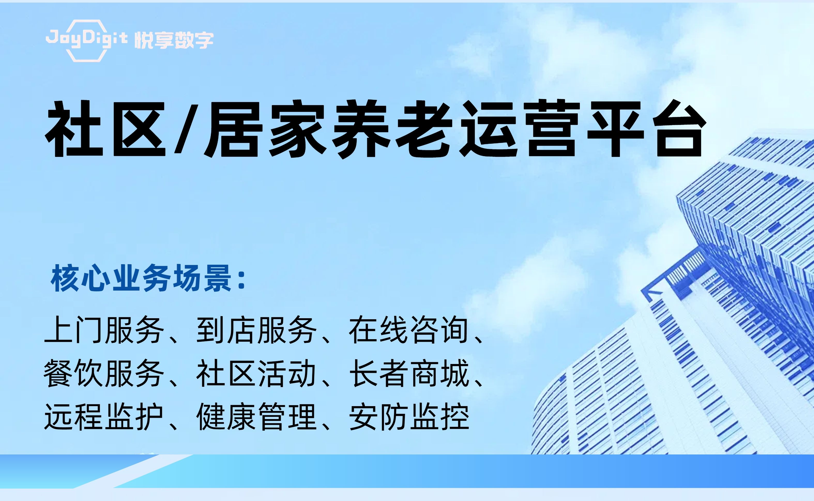 北京悅享數(shù)字科技有限公司(JoyDigit?,簡稱悅享數(shù)字?)作為養(yǎng)老行業(yè)數(shù)字化轉型的引領者,以“數(shù)字驅動健康?,智慧賦能養(yǎng)老?”為愿景,以iSpeed作為養(yǎng)老行業(yè)數(shù)字化轉型的標準,通過融合大數(shù)據(jù)、人工智能、物聯(lián)網(wǎng)、區(qū)塊鏈和移動互聯(lián)等創(chuàng)新技術,打造了領先的數(shù)字化養(yǎng)老解決方案-悅享養(yǎng)老數(shù)字化平臺(JoyDigit NexSight Platform),端到端覆蓋了數(shù)字化渠道與銷售、業(yè)務流程標準化與智...